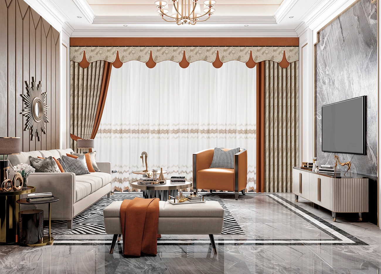 探戈橘紅,展現(xiàn)熱情四射的誘惑,配合雅致溫柔的米褐色,使空間充滿現(xiàn)代流行藝術氣息,輕而易舉表現(xiàn)一種愉悅的態(tài)度,浪漫滿點。